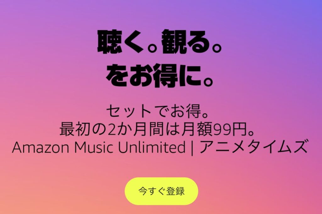Amazon Music Unlimitedとアニメタイムズが2ヶ月間、月額99円